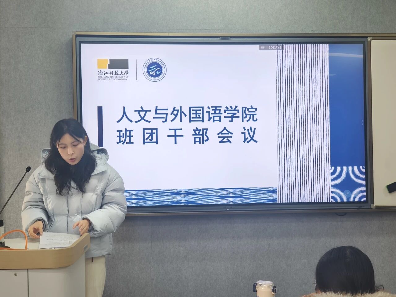 为统筹推进学期末各项工作,明确班委职责,助力班级建设提质增效,浙江科技大学人文与外国语学院于近期召开班团干部会议,各年级辅导员、全院27个班级的班长和团支书齐聚一堂,共同解锁学期末工作“关键词”。会议由学工办主任王亚云主持。