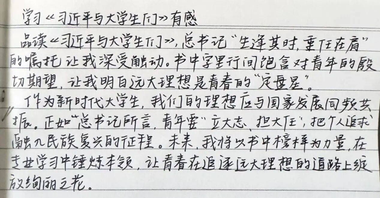 阅读分享的环节落下帷幕,主持人提议在场的所有学员,借着这股还未散去的思想热度,写下此刻的阅读感悟,围绕“从《习近平与大学生朋友们》中感悟到的理想力量”“自身未来的践行方向”这两个核心方向来写。