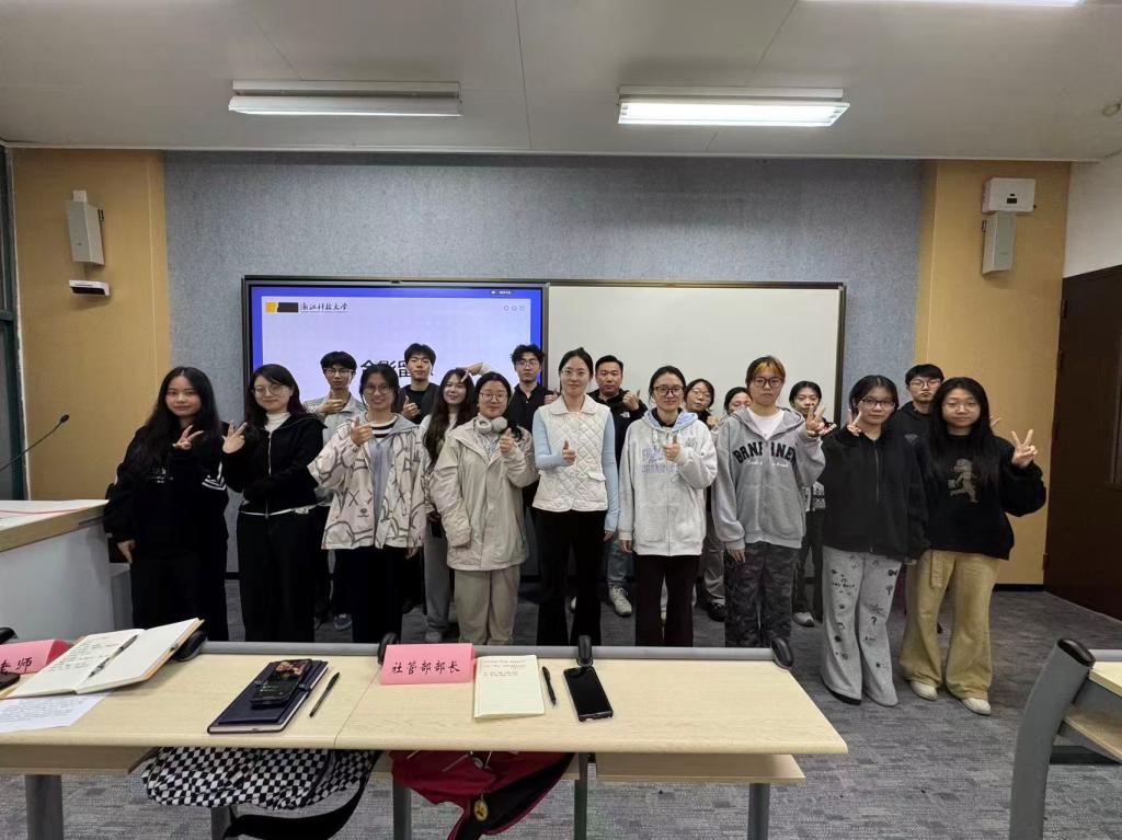 随后,我院社团管理负责人朱可莹对《浙江科技大学学生社团星级评定细则》进行系统解读,强调规范是社团发展的基石,活动质量与宣传效果是提升影响力的关键,各社团要充分认识星级评定的重要导向作用,以此为契机,不断加强自身建设,提升发展内涵。社团管理部门部长杨希月围绕社团活动与宣传材料审批流程、材料提交规范等内容进行详细说明。她在发言中指出,学生社团是校园文化建设的重要载体,是落实立德树人根本任务的有效平台,做好社团管理工作责任重大、使命光荣。希望各社团负责人进一步增强责任意识,认真履行职责,共同推动我院社团工作再上新台阶。