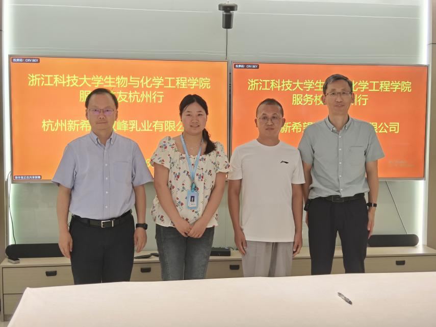 杭州新希望双峰乳业有限公司副总经理、总工程师赵广生,生化学院生物工程专业2010级校友汪云峰,化学工程与技术专业2022级研究生校友夏婷等企业代表出席活动。活动中,路胜利一行参观了企业展示厅与智能化牛奶工厂,系统了解双峰乳业的发展历程、产业布局及创新发展模式,为后续合作奠定良好基础。