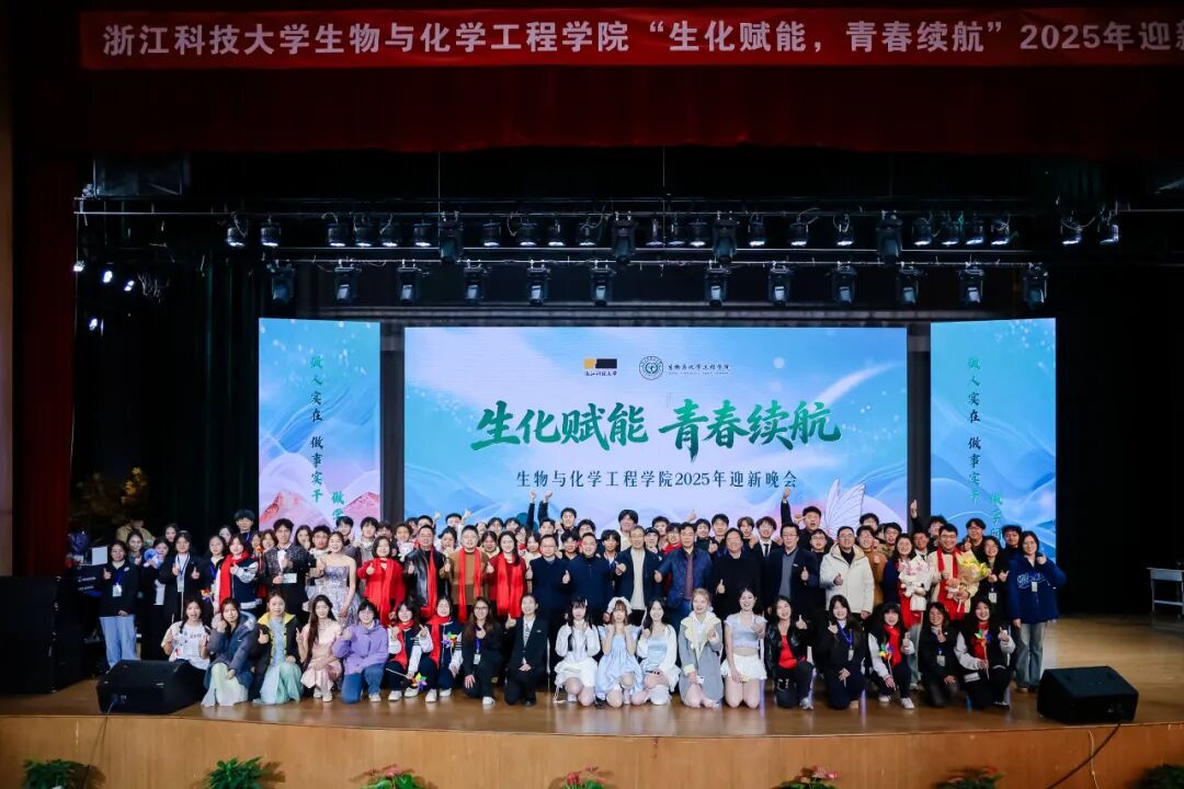 12月22日晚,浙江科技大学生物与化学工程学院“生化赋能,青春续航”2025年迎新晚会圆满落幕。浙江科技大学党委副书记单胜道,浙江科技大学原党委委员、生化学院创始院长毛建卫,安吉校区管委会副主任、管理学院党委副书记、纪委书记范俊强,经济学院党委副书记、纪委书记姚腾,中德学院/中德工程师学院党委副书记、纪委书记李成炜以及生物与化学工程学院党政领导班子成员、各系教师、辅导员、部分二级学院团委书记出席了本场晚会。