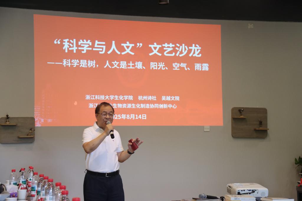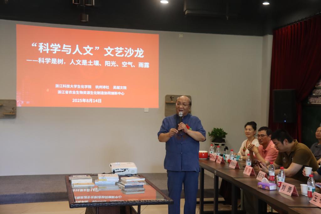 8月14日,“科学与人文”文艺沙龙在浙江科技大学校友之家顺利举办,沙龙主题为“科学是树,人文是土壤、空气、阳光、雨露”,由浙江科技大学生化学院、杭州诗社、吴越文院、浙江省农业生物资源生化制造协同创新中心联合主办,学界、文化界等领域学者嘉宾,浙科大部分师生与校友齐聚一堂,共同探讨科学与人文的交融之美。