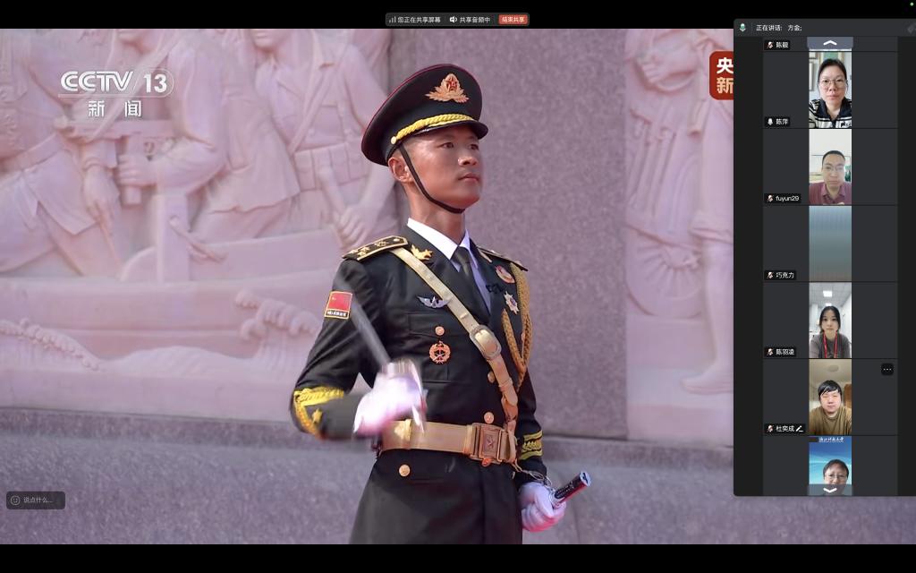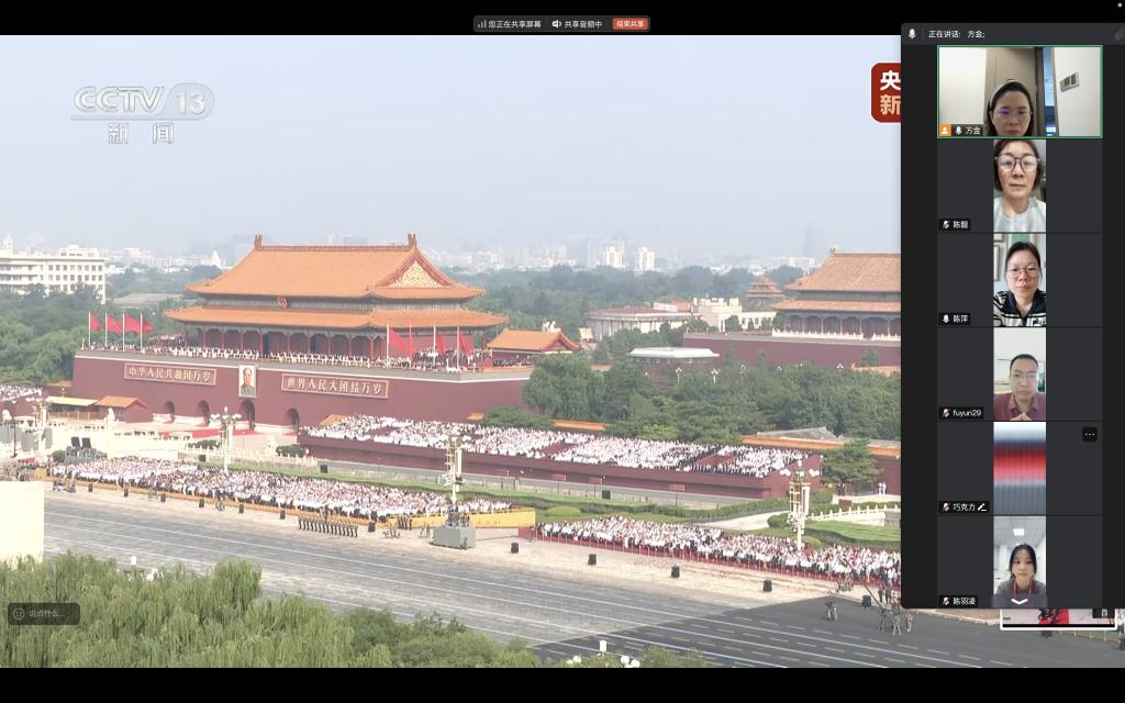 9月3日,在北京天安门广场举行盛大阅兵仪式,纪念中国人民抗日战争暨世界反法西斯战争胜利80周年。浙江科技大学监评与教发中心党支部在线上共同观看了这场盛大的阅兵仪式,并深入学习有关重要讲话精神。