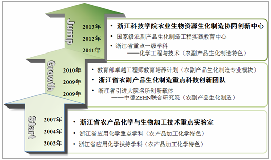 当前,专业与学科交叉融合,通过浙江省农产品化学与生物加工技术重点实验室、浙江省农副产品生化制造重点科技创新团队、化学工程与技术一级学科硕士点、省十二五重点学科(浙江省化学工程与技术重点学科),浙江省“2011”协同创新中心(农业生物资源生化制造)、中德ZEHN联合研究院(中德四校合作)等平台,围绕农业生物资源战略性新兴产业和前沿领域,发展农副产品生化制造创新特色学科方向。