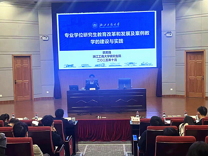 蔡美强教授作题为《专业学位研究生教育改革和发展及案例教学的建设与实践》的报告,他从国家政策背景、浙商大方案、主要举措和行动、案例建设与实践等四方面阐述了专业学位研究生案例教学的必要性和重要性,建议导师积极进行研究生案例教学。