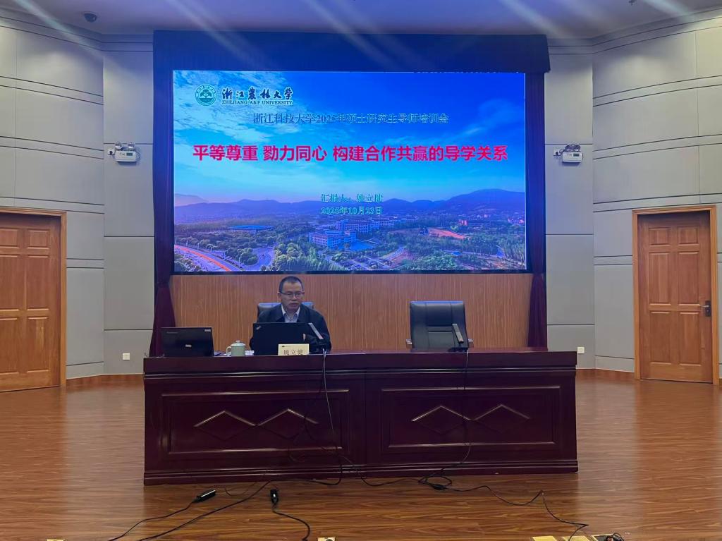 为全面加强我校研究生导师队伍建设,落实立德树人根本任务,提升导师指导能力和研究生培养质量,10月23日,学校举行2025年硕导培训会,研究生院相关负责人、学校2025年新增硕导、有意申报硕导资格教师和优秀硕导代表参加会议。浙江农林大学光机电工程学院姚立健副院长、浙江工商大学研究生院蔡美强副院长应邀为与会人员作报告。