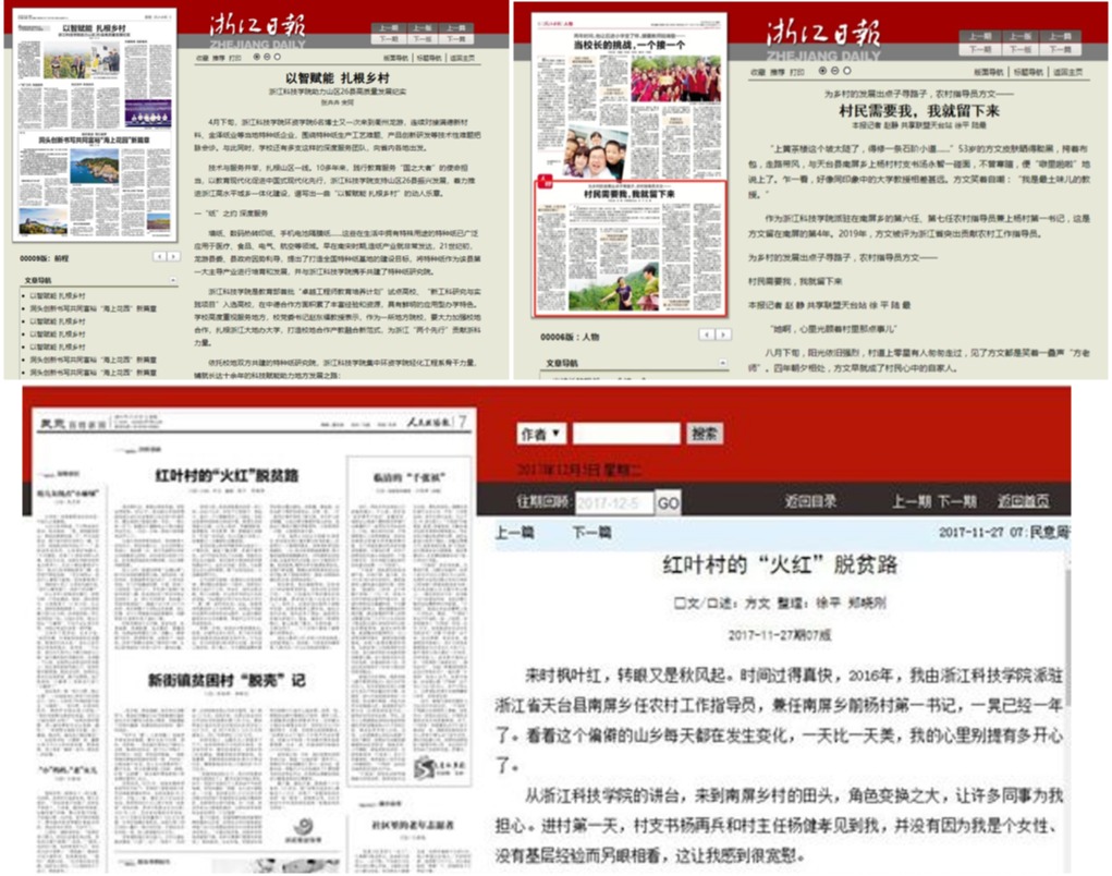 自2008年9月起,我校积极响应省委、省政府的号召,与天台县南屏乡结对,通过资金补助、产业扶持、技能指导等方式,提升帮扶效能。十六年来,学校先后选派九任农村工作指导员长期扎根天台县南屏乡,依托学校科技、人才、智力、技术、文化等集聚优势,从产业发展、项目开发、乡村建设、基层治理、文化教育等多维度开展长期帮扶,帮助当地解决种植养殖产业发展困境、历史建筑保护困境、低收入农户农副产品销售困境和土地及房屋流转出租困境。学校充分利用自身的教育资源优势,帮助南屏乡天南粮食合作社种植的水稻获得了国家有机产品的认证;为上杨村美丽乡村规划提供设计方案,勾勒出“农文旅”融合的新篇章;充分利用高校的大学生资源,在南屏乡建立暑期大学生社会实践基地、实验基地和写生基地,进一步加强校地帮扶联系。经过十六年的接续努力,曾经偏僻落后的南屏乡已经蝶变为远近闻名的致富乡,学校定点结对的上杨村已经从昔日贫困村成功蝶变为远近闻名的共富联盟龙头村,成功探索出一条产业兴、乡村美、农民富的现代乡村振兴之路。学校结对帮扶工作也受到人民政协报、浙江日报、潮新闻客户端等媒体报道。