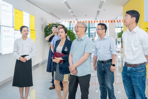 杨建武会长一行首先参观了学校中德合作馆,了解学校中德合作历史与发展状况。随后到学院参观中法合作办学项目十年成果展及中法建筑遗产材料保护实验室,深入了解学院与法国合作院校在建筑遗产保护研究、人才培养、学术交流等领域的合作历程与标志性成果。