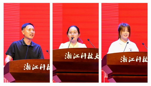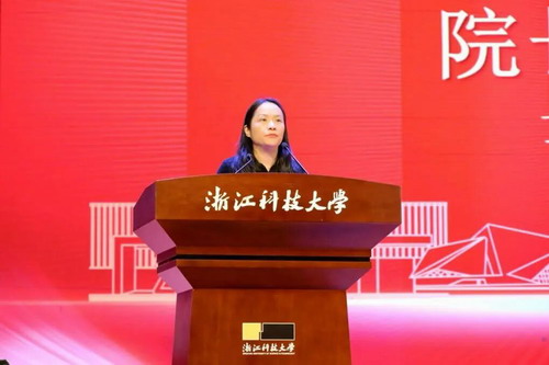 给排水科学与工程专业储意轩老师代表教师发言。她希望同学们一要学会与自己对话,做内心坚定的人;二要学会在求知与实践中成长,做知行合一的人;三要学会与时间做朋友,做自律而有韧性的人。
