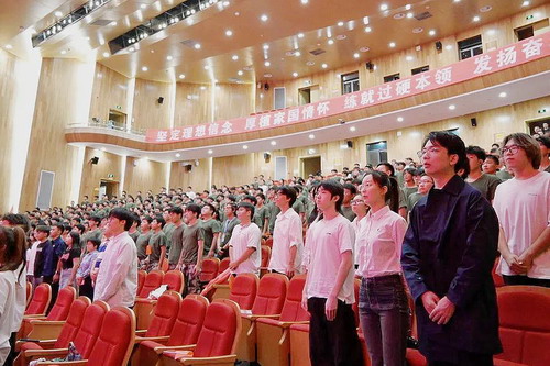 开学典礼在全体师生齐唱国歌声中拉开帷幕。