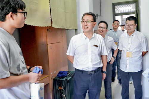 当天,校长陈建孟、校党委副书记张日向在学工部部长杨志祥、后勤服务中心主任王登科、学院执行院长童芸芸、学院党委副书记(主持工作)金辉等领导、辅导员的陪同下,深入2025级本科生宿舍,亲切看望刚刚入校的新生。校领导细致询问同学们的家乡情况、到校适应状况及对学校的初步印象,并认真听取家长们的意见与期待。他们勉励新生要尽快适应新环境,与室友和睦相处,学会独立生活,积极融入集体,在奋斗中书写无悔青春。