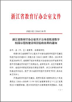 2016年我校被浙江省教育厅授予首批“浙江省数字校园示范学校”称号。
