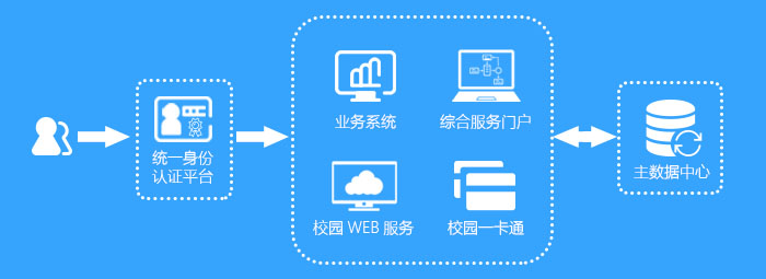 至此为止,已建成较完善的数字校园信息化体系。主数据中心关联校内业务系统、各web站点、综合服务门户、校园一卡通系统,通过统一身份认证平台的权限控制形成闭环的数字生态环境,为全校师生提供信息化服务。